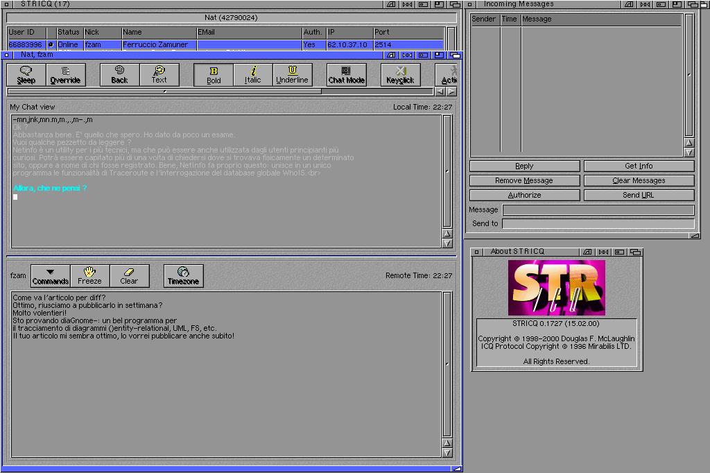 sessione ICQ tra GnomeICU per FreeBSD e STRICQ per Amiga