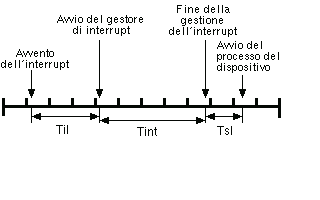 • Latenza di interrupt (Til): tempo che intercorre tra la ricezione di un interrupt hardware e l'esecuzione della prima linea di codice del gestore di interrupt software.
